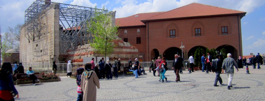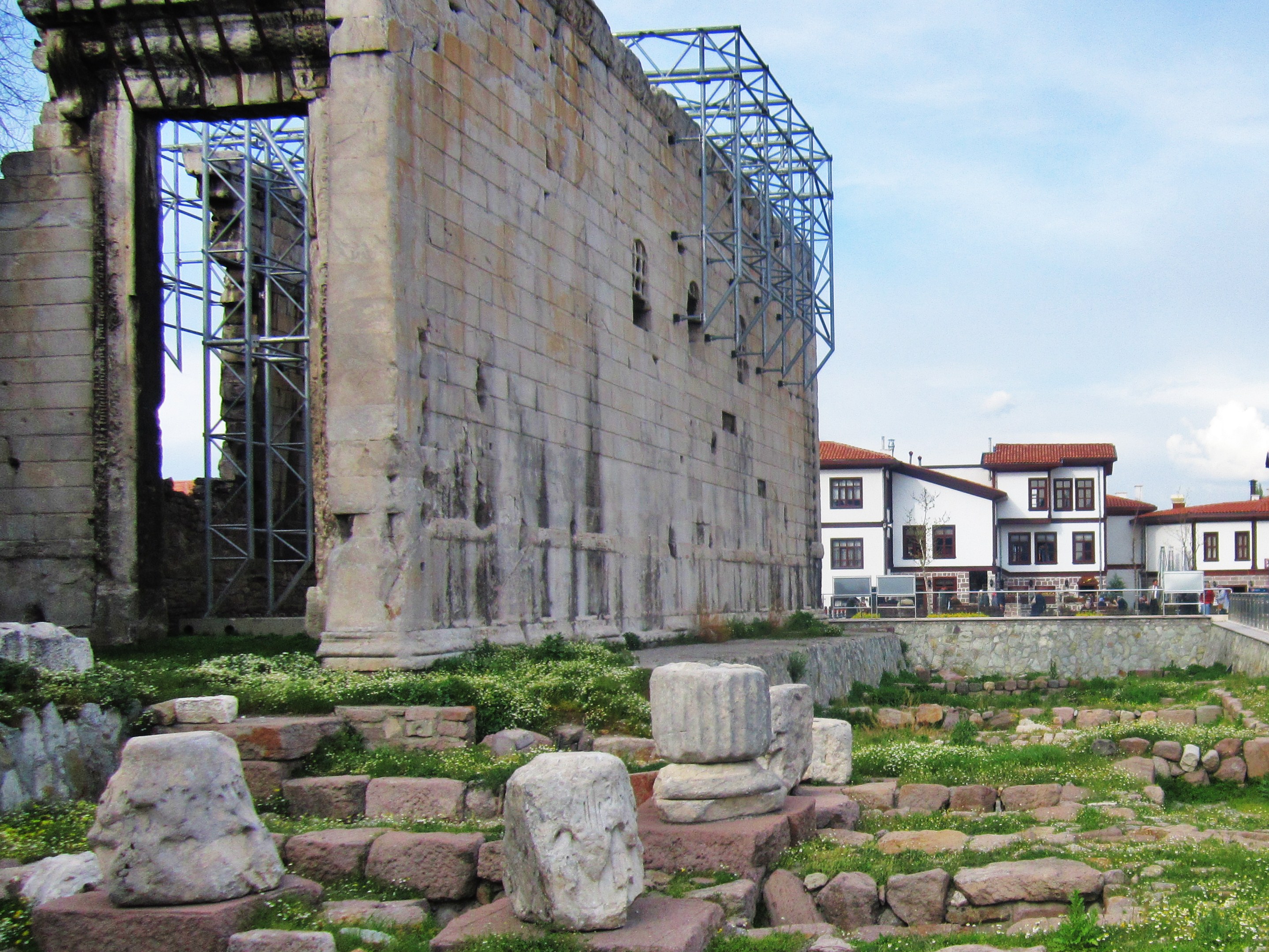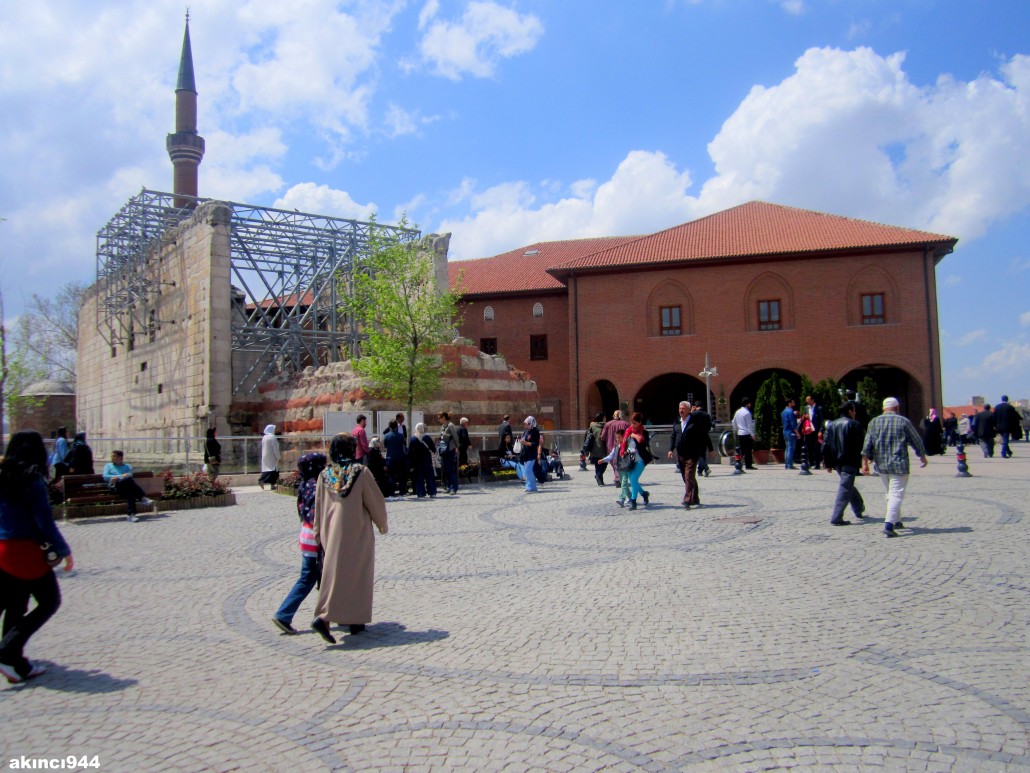 Cami çevresindeki tarihi yapılarda yenileme çalışmaları yapılıyor, büyük bir bölümü yenilenmiş binaların yanından geçerek cami avlusuna ulaşıyorum. 1948 yılında kurulmuş olan Hacı Bayram-ı Veli Camisi’ne yardım derneğinin bulunduğu altıgen, renkli ve kesme taşlardan yapılmış yapının yanından geçiyorum. Augustus ve Roma Tapınağı ile karşılaşıyorum. Ankara’daki Augustus Tapınağı dünyadaki en önemli Roma Dönemi yapılarından biridir. Tapınak bu önemini; Latincesi tapınak duvarlarının iç yüzüne, Yunancası ise güneydoğu duvarının dış yüzüne kazınmış eşsiz yazıtlara borçludur.Bu yazıtlarda Roma İmparatoru Augustus’un başarıları anlatılmaktadır.