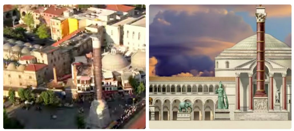 Forum Konstantin olarak bilinen meydanın etrafı sütunlu galeriler ile çevrili olduğu anlatılıyor tarih kitaplarında. Konstantin, sütunun üzerindeki güneşi selamlayan Apollon heykelini kaldırtıp, kendi heykelini koydurtmuştu. Konstantin’den sonra gelen Bizans İmparatorları Julianus ve Theodosius bu geleneği sürdürerek kendi heykellerini bu sütunun üzerine koydurturlar.